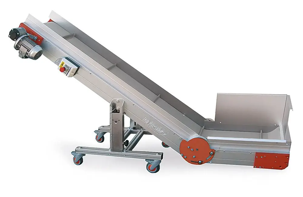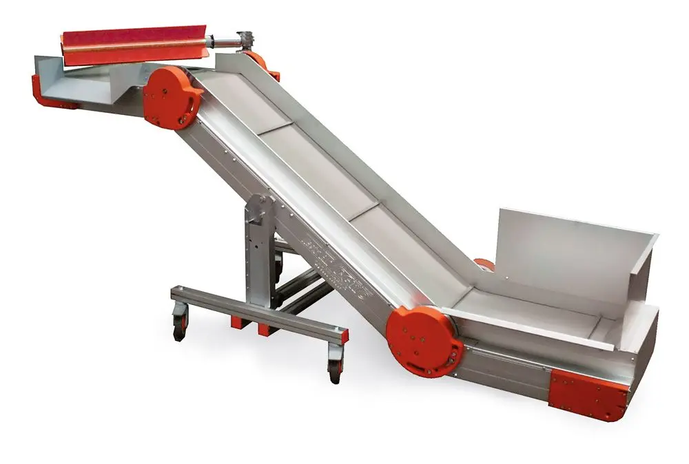 Los modelos AL-CB/CBS son cintas elevadoras motorizadas fabricadas en aluminio, disponibles en diferentes longitudes y anchos bajo pedido.