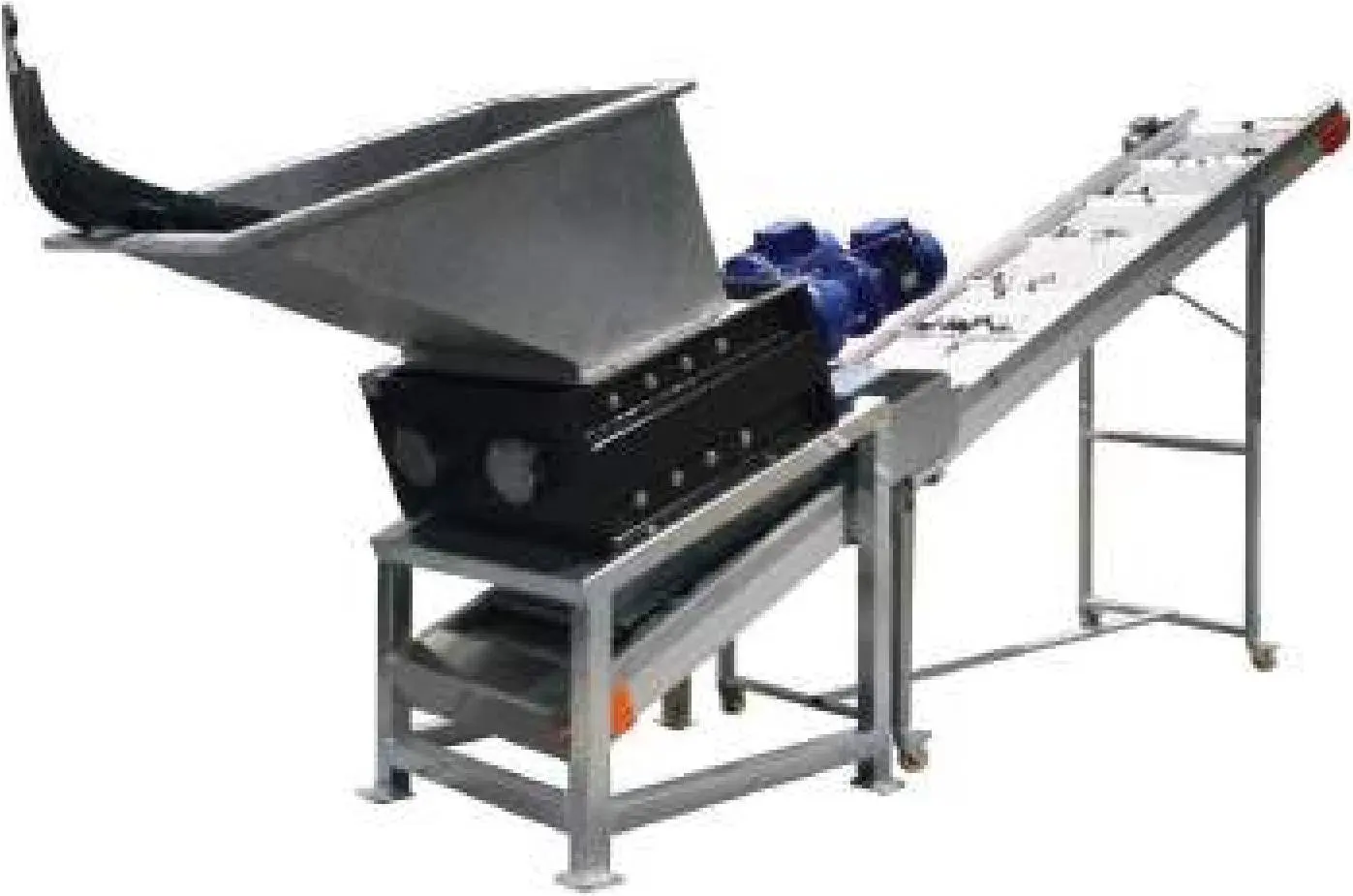 Puede equiparse con una tolva para cargar y un tobogán para descargar.