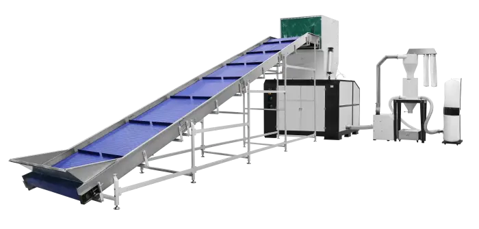 • ¿Qué tipo de plástico se procesará y en qué forma (botellas, film, piezas grandes)? El tipo y la forma del material influyen en el diseño de las cuchillas del triturador, la velocidad de la cinta y el sistema de alimentación.